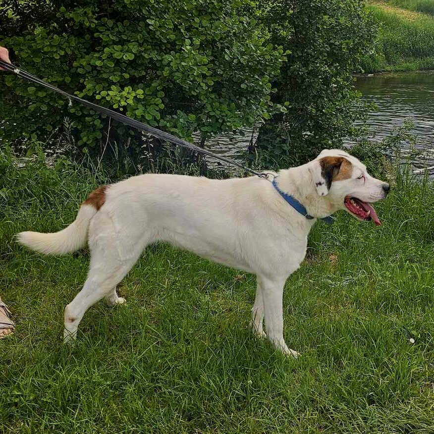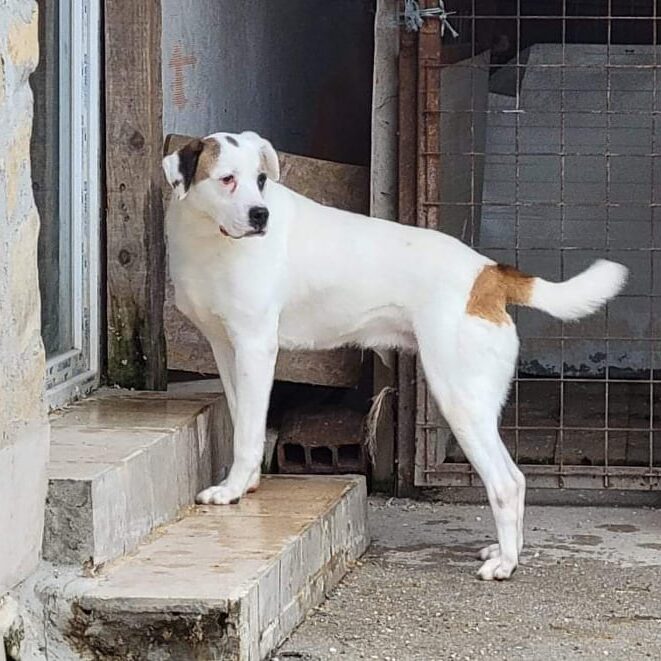 Der Hund ist ein ehemaliger Straßenhund, der durch unseren Verein in eine bosnische Pension kam.